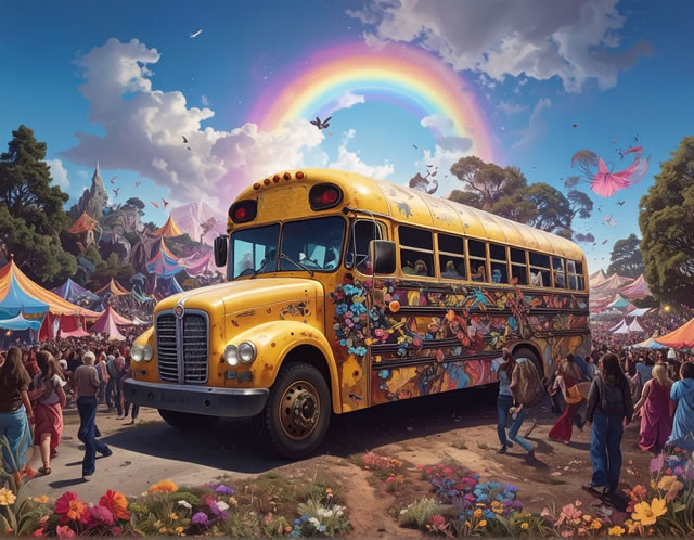 It took us more than six hours to cover the twelve miles, but as the saying goes, getting there was half the fun. Food, drink, drugs, and good vibes flitted atop the river of hippies like water bugs dancing on a babbling brook.